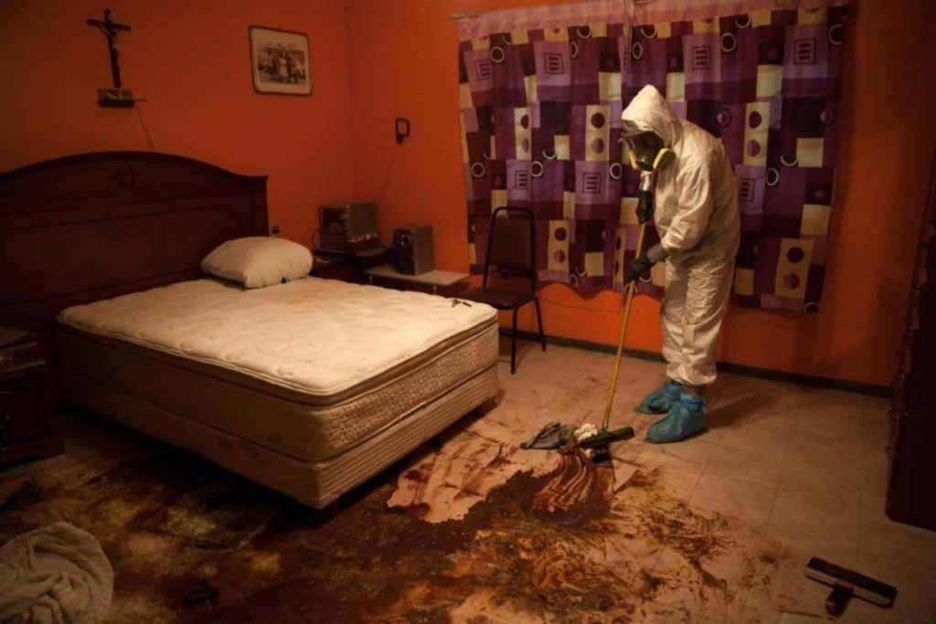 Crime scenes, such as homicides and instances where severe bodily injuries have occurred, are typically cleaned up by biohazard cleanup teams equipped to handle the mess.